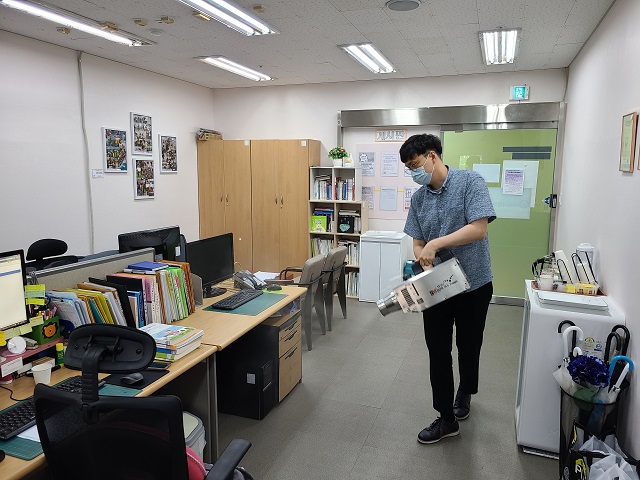 코로나19 예방을 위해 매일 수시로 방역을 진행하고 있습니다. 페이지 정보 작성자 관리자 댓글 0건 조회 1,872회 작성일 20-06-09 00:21 목록 본문 페이스북 공유 트위터 공유 구글+ 공유 이전글장애인가족자조모임 "다함께 차차차: 7월 13일 현장 스케치 20.07.14 다음글구리시장애인가족지원센터는 코로나19 확산방지를 위해 자체방역을 하고 있습니다. 20.04.03