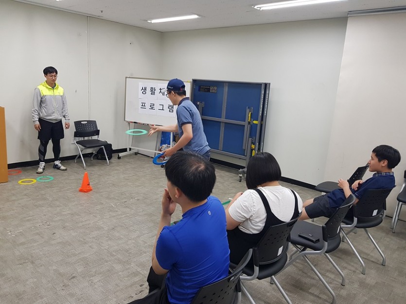 장애인 생활체육 프로그램 (6회기) 페이지 정보 작성자 관리자 댓글 0건 조회 1,720회 작성일 19-05-16 00:21 목록 본문 페이스북 공유 트위터 공유 구글+ 공유 장애인 생활체육 프로그램 6회기 진행하였습니다. 간단한 체조와 보치아볼, 플라잉디스크를 활용하여 사고력, 집중력 기르기 진행하였습니다~^^ 이전글장애인 생활체육 프로그램 (7회기) 19.05.22 다음글청소년 생활요리교실(수요일반 5회기)_마지막 회기 19.05.09