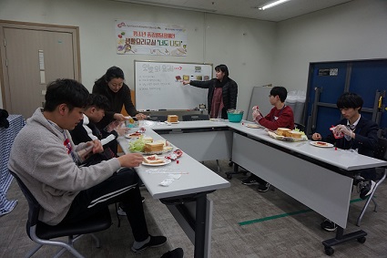청소년 생활요리교실(수요일반 1회기) 페이지 정보 작성자 관리자 댓글 0건 조회 1,727회 작성일 19-04-04 00:21 목록 본문 페이스북 공유 트위터 공유 구글+ 공유 청소년 중증발달장애인 생활요리교실 너도, 나도 수요일반 1회기를 진행하였습니다. 이전글청소년 생활요리교실(금요일반 1회기) 19.04.08 다음글장애인 생활체육프로그램(1회기) 19.04.04