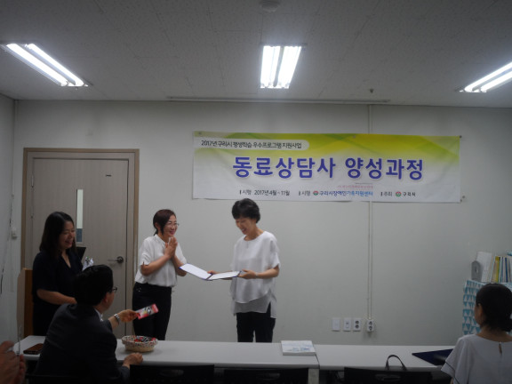 2017 동료상담사 양성과정 15주차 수료식 페이지 정보 작성자 김아롬 댓글 0건 조회 1,546회 작성일 17-07-19 00:20 목록 본문 페이스북 공유 트위터 공유 구글+ 공유 이전글몸만들기 성인장애인 체형교정 P.T 프로그램 2주차 (목) 17.07.20 다음글몸만들기 성인장애인 체형교정 P.T 프로그램 2주차 (화) 17.07.19