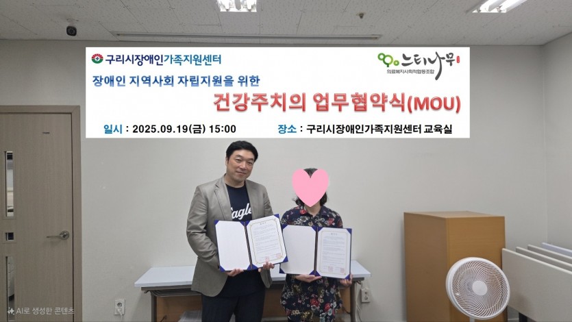 장애인 지역사회 자립지원 대상자의 의료지원을 위해 건강주치의 "업무협약(MOU)"을 체결하고 상호 협력하기로 하였습니다.