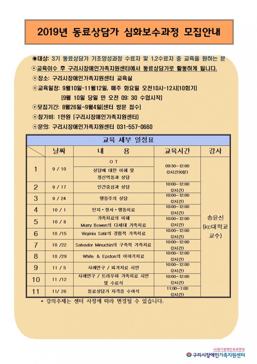 2019년 동료상담 양성과정 (모집) 페이지 정보 작성자 관리자 댓글 0건 조회 7,574회 작성일 19-08-19 00:18 목록 본문 페이스북 공유 트위터 공유 구글+ 공유 이전글하반기 사회복지 현장 실습생 모집 19.08.20 다음글육아휴직 대체인력 모집(마감) 19.08.28 댓글 0 댓글목록 등록된 댓글이 없습니다.