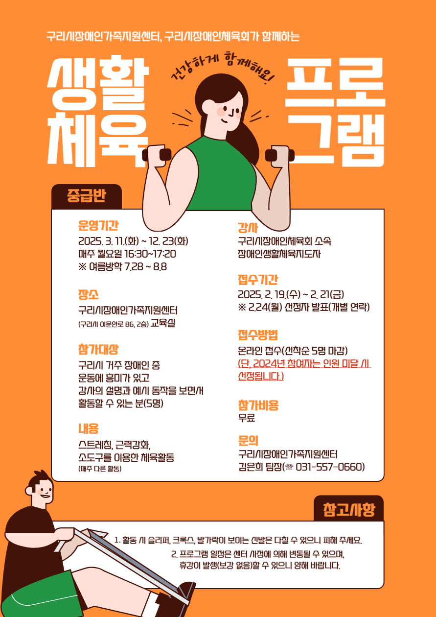 2025년 생활체육교실 "중급" 추가(1명), 예비 참여자 모집