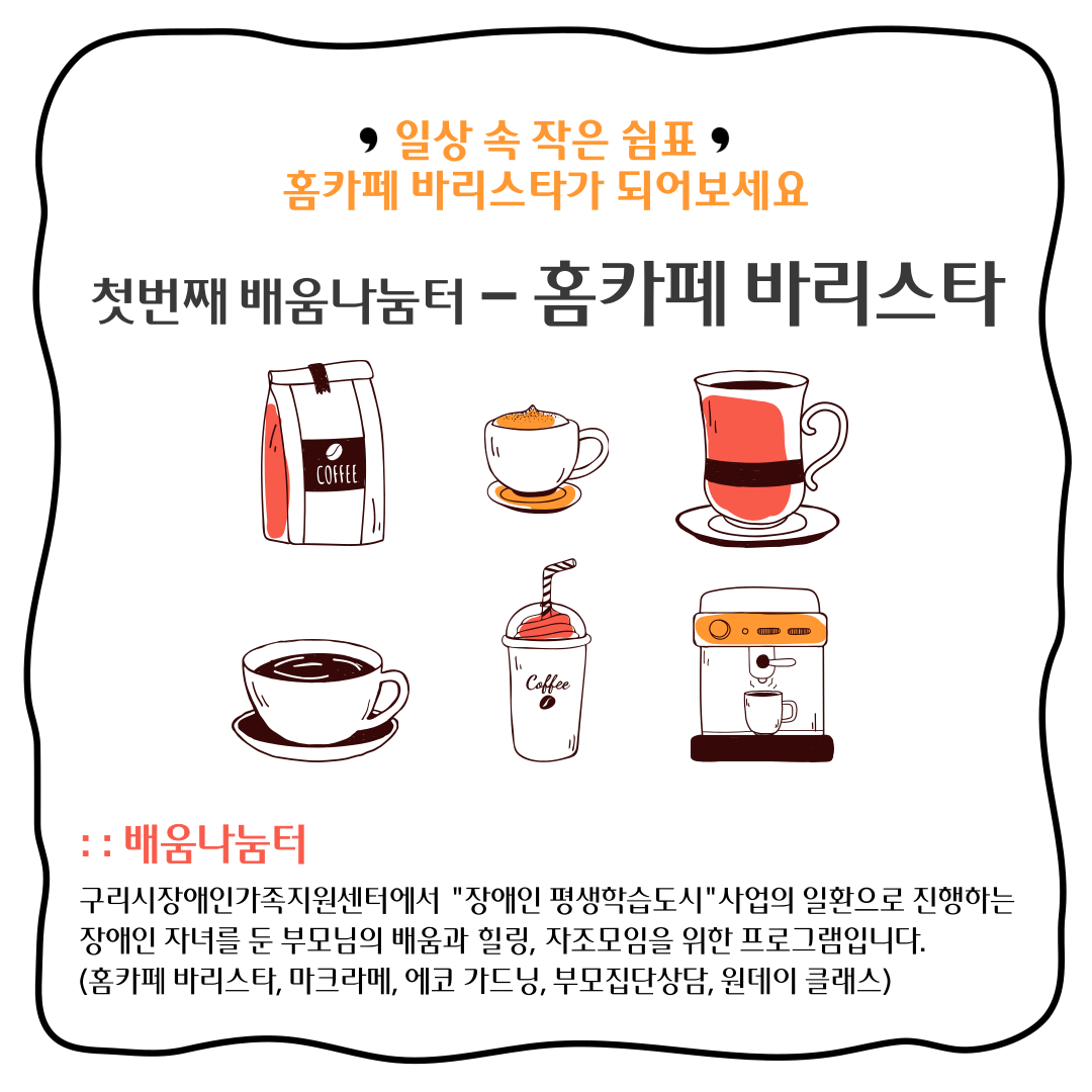 • 배움나눔터 1 - 홈카페 바리스타 (부모 프로그램) 추가 참여자 모집(3명)