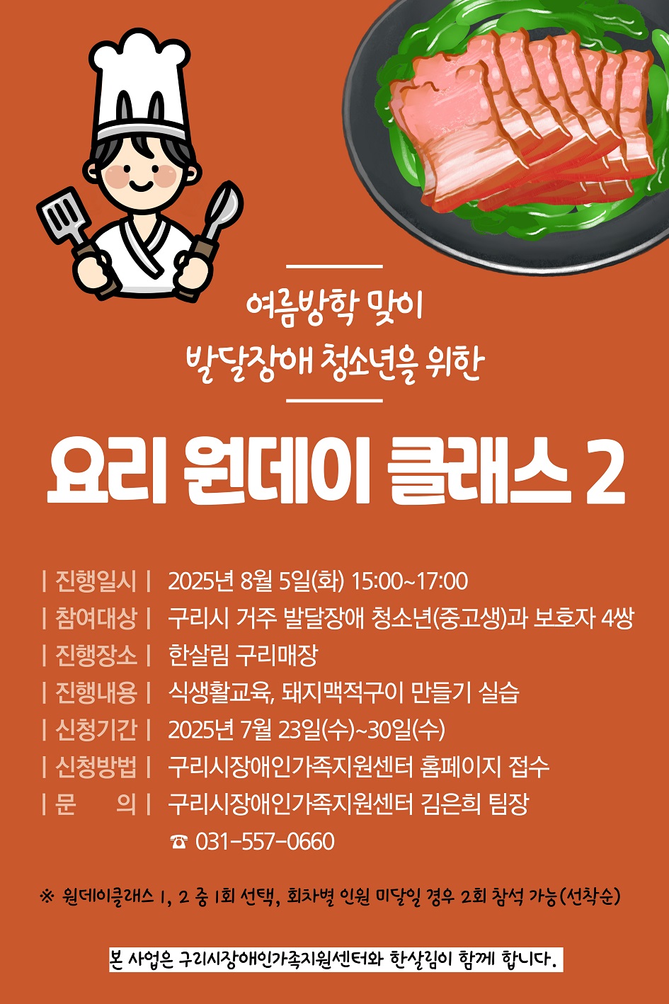 • 여름방학 맞이 "요리원데이클래스 2 - 돼지맥적구이 만들기"