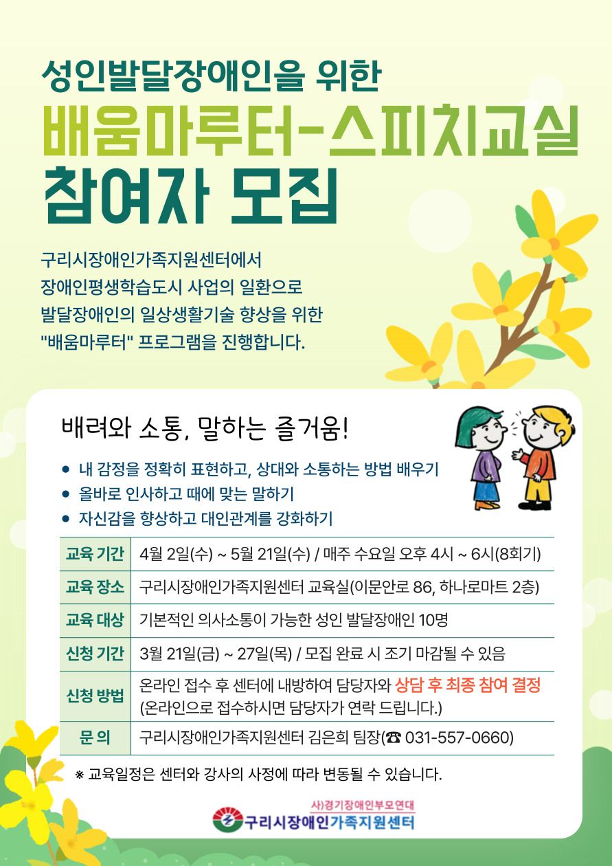 • 성인장애인 "배움마루터_정리수납교실" 참여자 모집(모집기간 연장)