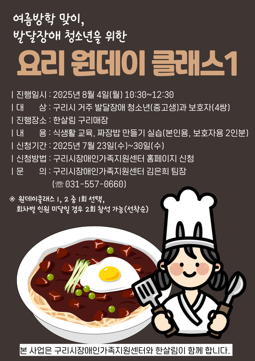 • 여름방학 맞이 "요리원데이클래스 1 - 짜장밥 만들기"